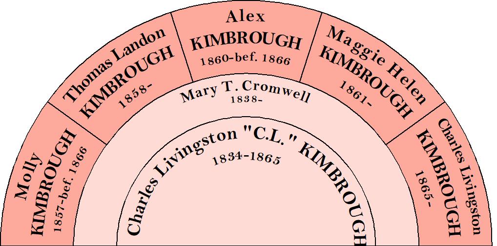 A year after C L.’s death, in August of 1866, Mary filed a petition in the county court requesting homestead and maintenance for her and her now 3 children. Charles Livingston Kimbrough II had been born in 1865. Mary stated that her late husband, despite owning land was very far in debt and she was unable to feed or clothe herself and her children without the sale of estate items. It is difficult to know how Mary was surviving during that time, although her brother-in-law, G.D., who had been named will administrator by the court, still lived nearby.