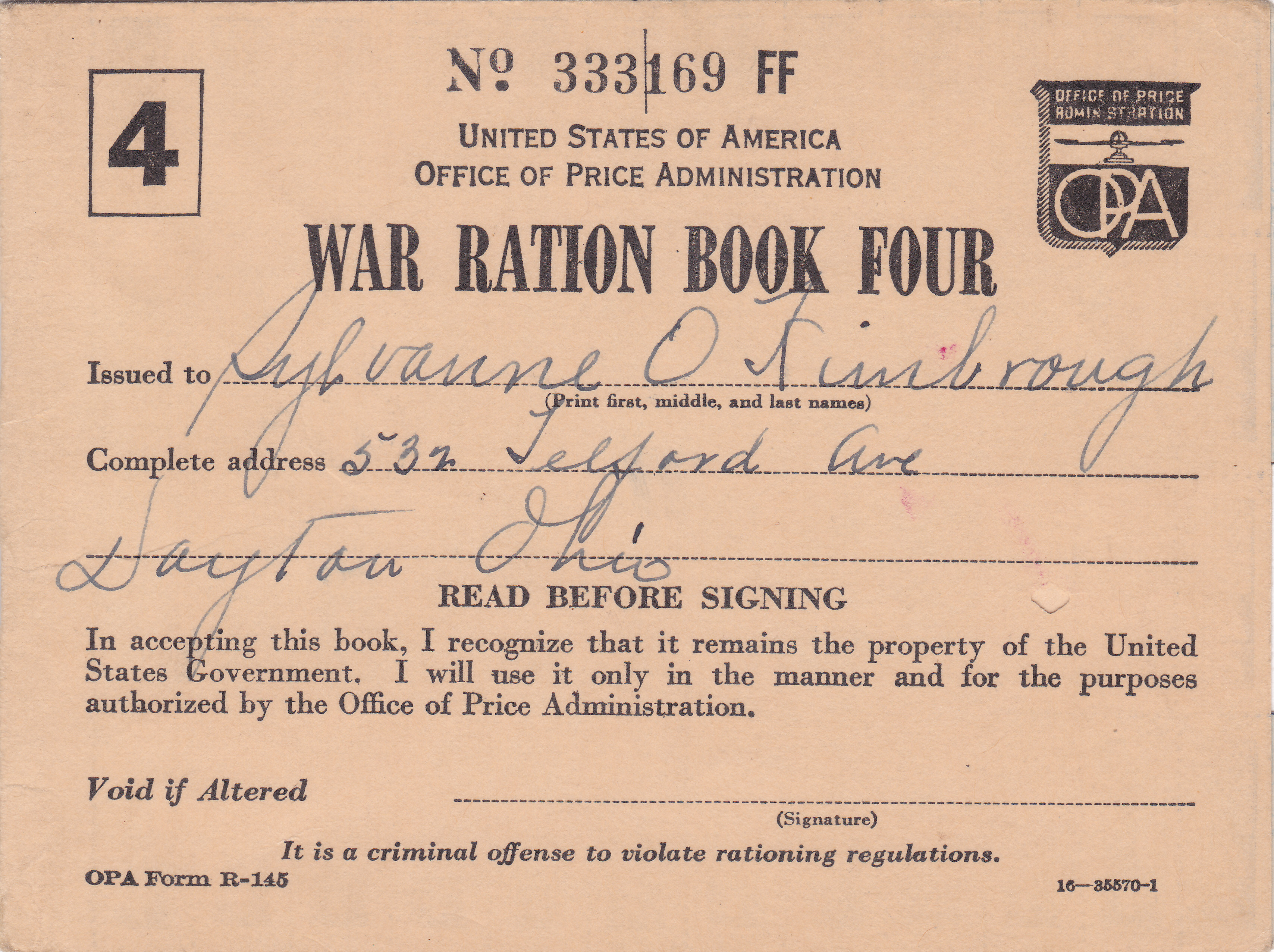 The bombing of Pearl Harbor and the United States entry into World War II up ended the lives of many Americans. In the case of Sylvanne it created some interesting opportunities. For reasons we don’t know, other than the call for women to join the war effort, Sylvanne ended up in Dayton, Ohio around October of 1942. We‘re not sure of her job but it apparently put her in proximity with a certain Lt. R. L. Kimbrough.