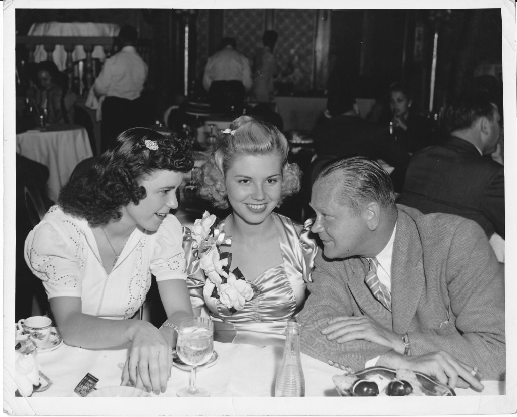 Along the way Sylvanne entered a swimsuit competition and was chosen as one of ten from 4,000 or 40,000 (depending on which article you read) nationwide entries. Can you imagine? The prize for being chosen was a trip to Hollywood. One of the ten young women chosen in addition to Sylvanne was Rosemary LaPlanche, who later became Miss America. Talk about star power! Since the contest was sponsored by Catalina, the girls appear in photos wearing swimsuits as they travel about town meeting lots of famous people and seeing the sights. Sylvanne’s parents accompanied her as chaperones.