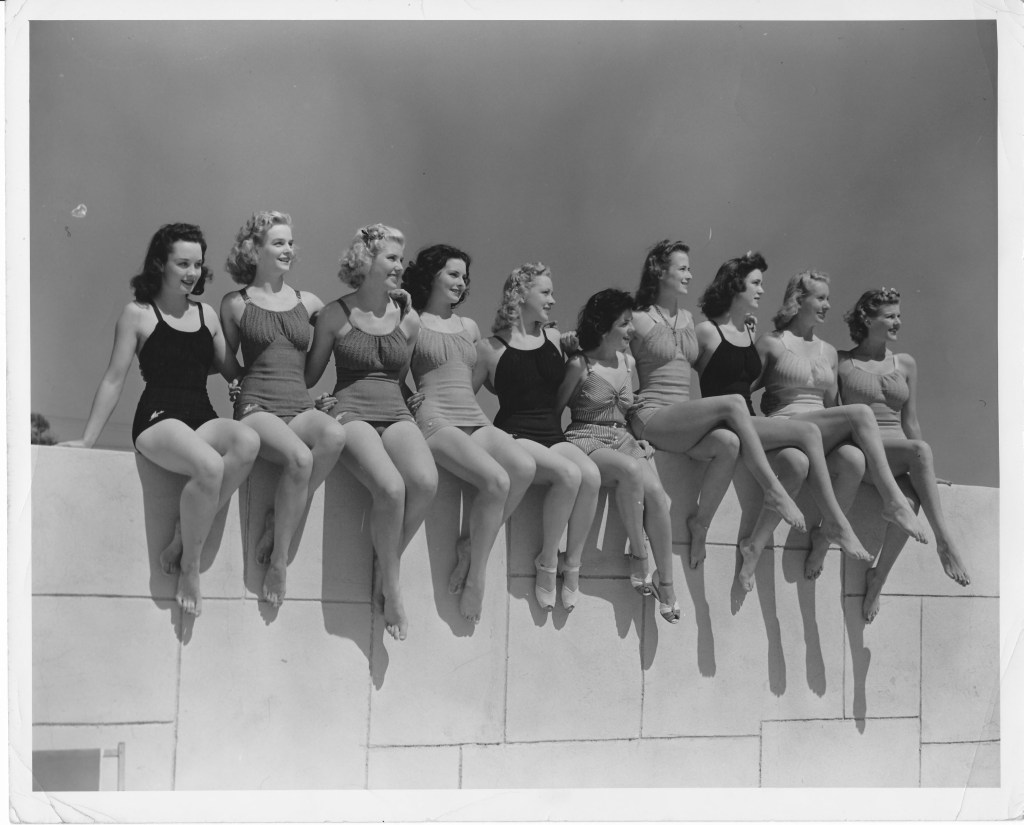 The late 30’s to early 40s was the evolution of the bathing suit competition. Due to the figure-hugging nature of these garments, photography eventually evolved into swimsuit photography exemplified by the annual Sports Illustrated Swimsuit Issue. Beauty contests also required contestants to wear form-fitting swimsuits. Swimsuit companies, such as Catalina, began to have contests to showcase their wares. These contests were open to young women across the country and their participation was preferred over professional models, likely to create more of a grassroots feel.